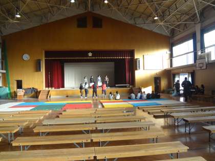 体育館では,明日の学習発表会の準備をしています。