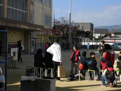 1122親子のつどいその8 公開日 2014/11/22 更新日 2014/11/22 学校の様子 『ストラックアウト』 運動場では,少年補導の方にアドバイスをもらいながら,たくさん的に当てようと懸命に投げていました。みんな上手です。