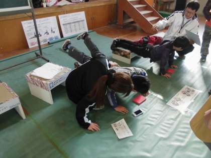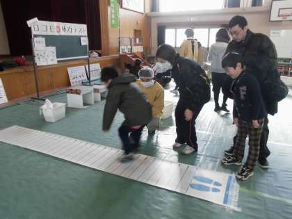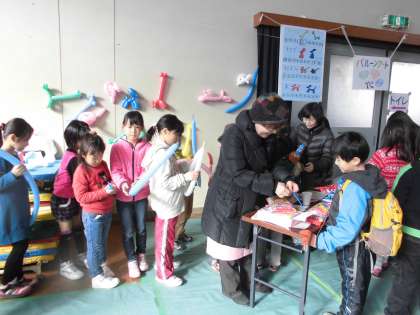体育館には,「バルーンアート」や「体力テスト」のコーナーがあり,おいしいおもちの他にも楽しみがありました。
