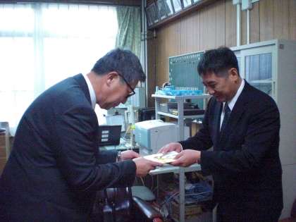 1218 贈呈式 公開日 2014/12/18 更新日 2014/12/18 学校の様子 本日競馬場より,明親小学校に「みえるもん」(教材提示装置)を寄贈していただきました。児童のノートも,すぐにテレビに映し出すことができる優れものです。贈呈式も終わり,学習に引張りだことなりそうです。