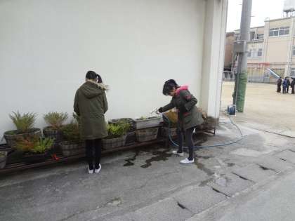 環境委員会の子どもたちが水やりをしていました。