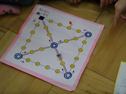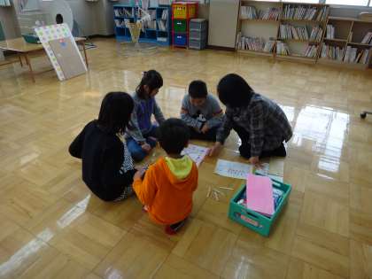 1219 若草学級 公開日 2014/12/19 更新日 2014/12/19 学校の様子 冬休み前の最後の授業。若草学級をのぞいてみると,児童朝会で紹介されていたユンノリで遊んでいました。ユンノリは日本のすごろくのような遊びです。細く切られた竹を投げて数を決め,進んでゆきます。ゴールして「やったー!」と嬉しそうにジャンプしている子どもの姿が印象的でした。国は違っても楽しい遊びは同じだなと感じさせられます。明親小学校では,遊びを通じて「韓国・朝鮮」の文化に接する機会を設けています。