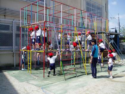 明親小学校では,総合遊具のことをチャレンジャーと呼びます。今日の1年生の体育は,そのチャレンジャーの使い方を学習しました。安全に気をつけながら,いろいろなことにチャレンジできる子どもたちに育てようと考えています。