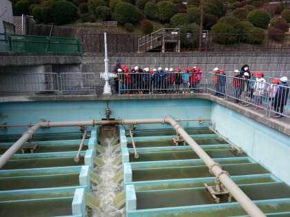 見学後に,水を飲んでいます。
