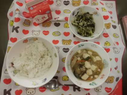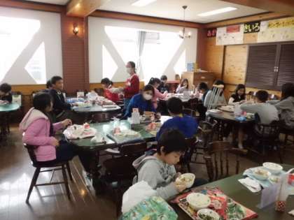 その後,みんなでランチルームで給食をいただきました。