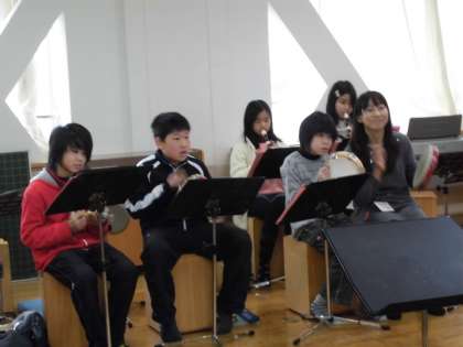 音楽の学習を交流しました。みんなで合奏や歌を楽しみました。