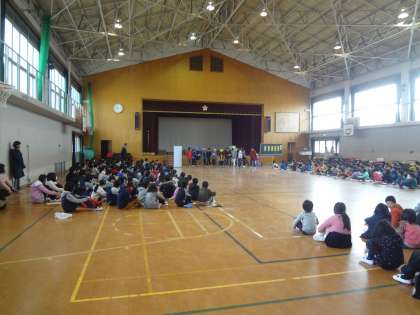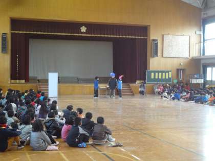 全校児童の前で劇をしてくれました。