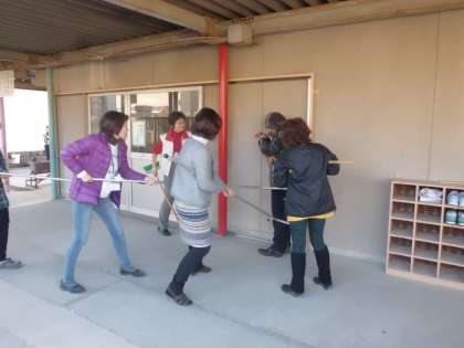 不審者侵入時に備えて,防犯訓練を行いました。教職員の対応方法についていろいろ教えていただきました。