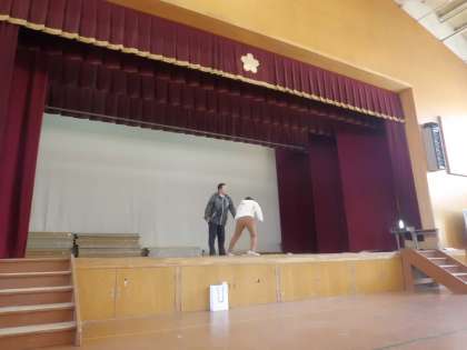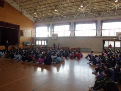 体育館にて緊急集会を開きました。伏見署の方から、実演も取り入れながら,身の守り方等について教わりました。
