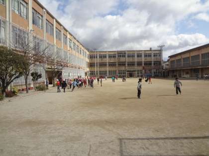 グラウンドでは,みんな遊びをしている学年もあります。