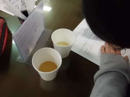 「水+しょうゆ」だけのものと「水+しょうゆ+?」いったい?は何なのか, 目・鼻・口などを使って,慎重に探していました。