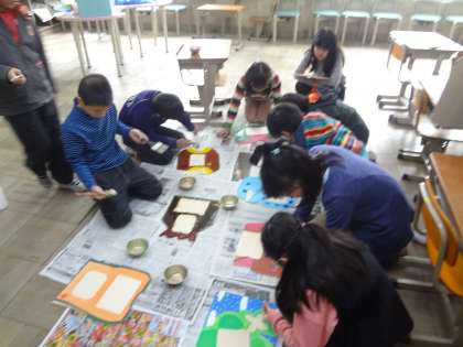 伝言板のニス塗りをしています。