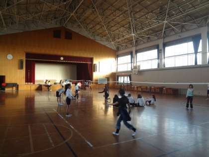 体育館では,バドミントン部が活動をしていました。