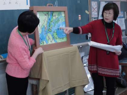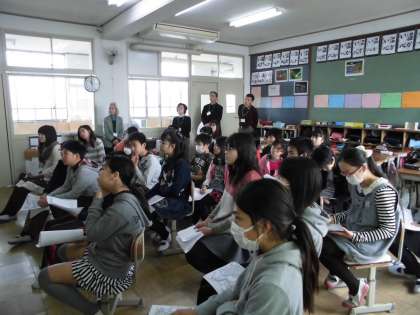 卒業まであと少し。この明親校の歴史を含め,淀の町の歴史を教えていただきました。大型紙芝居を見る表情は,真剣です。先人が築いてくれたこの町を大切にしていきたいと改めて感じました。