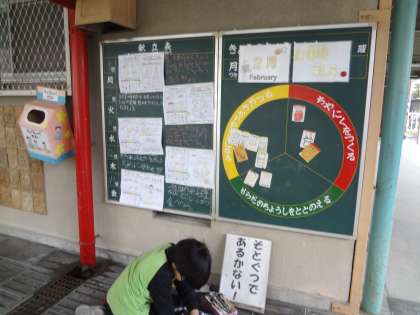 給食委員会の子どもが,栄養黒板の作成をしていました。