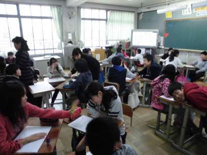 6年1組は,国語科「海の命」の学習を終え,命について考えを深めました。2組は,社会の学習です。一人一人が調べた世界の国の発表をしました。