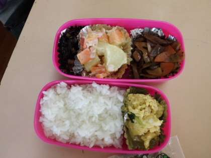 今日のおかずやごはんが入らなかった児童にとっては,中学生にむけて必要なお弁当箱の大きさを確認することが出来ました。