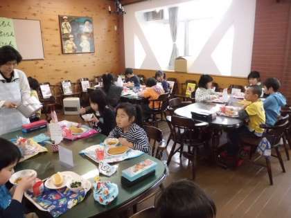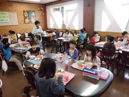 食べ物にも命がある…そんな話をお友達同士でしながら,残さずに食べようとしていました。