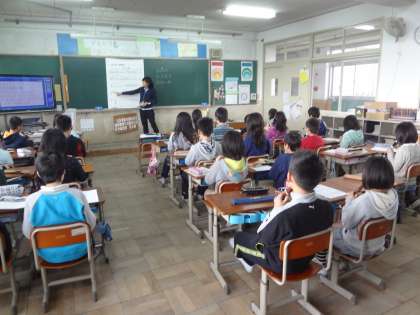 6時間目は音楽の学習で,「こきょうの春」をリコーダーでテストをしました。写真はテストをする前に鑑賞のポイントを真剣に聞いている様子です。