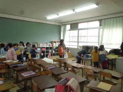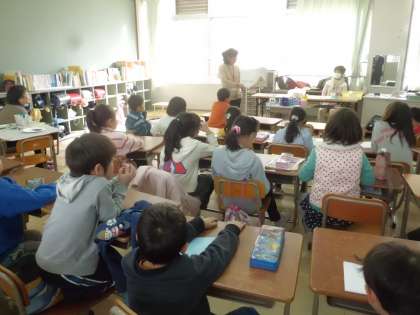 放課後まなび教室の閉講式がありました。記念に自分の手形を取り,学習プリントを綴じたファイルを持ち帰りました。最後に絵本を読んでいただきました。