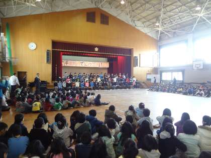 2時間目に体育館で6年生を送る会がありました。