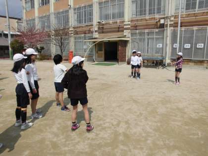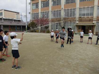 大縄跳びでの声かけが変わってきました。引っかかってしまった友達に対して,「どんまい!」,「もう一回やろうや!」と,前向きな声かけがたくさん聞こえます。