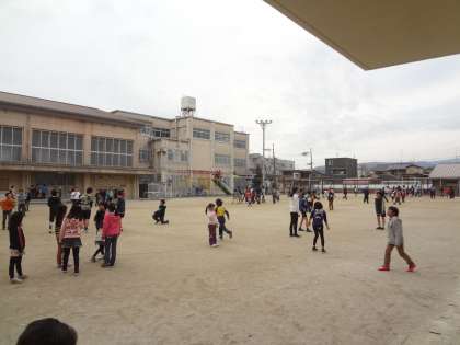 グラウンドでは,たくさんの子どもたちが元気よく遊んでいます。