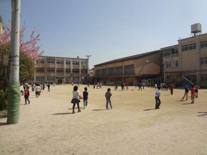 グラウンドで元気よく遊んでいます。