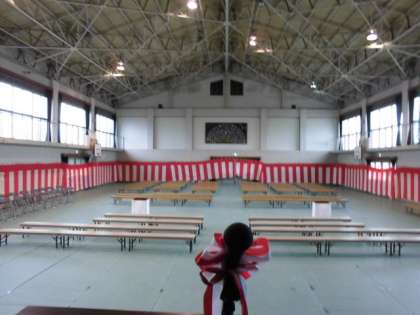 「明日旅立つ6年生のために…」と6校時に5年生と教職員で,卒業式準備をしました。5年生が,お世話になった6年生に感謝の気持ちで込めて隅々まで丁寧に掃除をしてくれました。本当に立派な会場となりました。