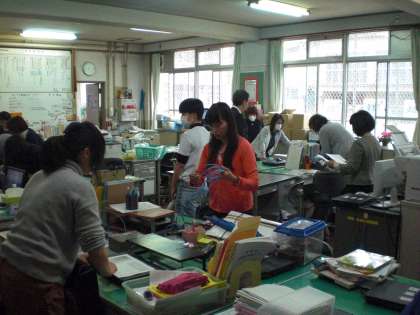 いよいよ平成27年度が始まりました。職員室内の机やいすの移動のあと,さっそく新学期開始に向けて,打ち合わせや教材の選定,下駄箱の準備などを行いました。あと7日で新学期スタートです。