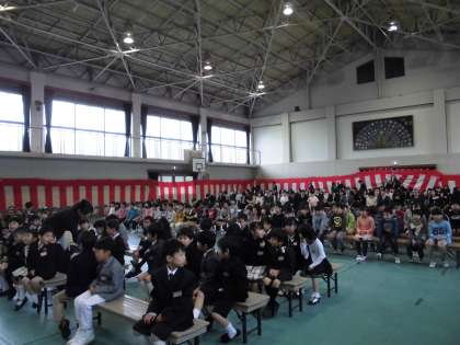 入学式前の会場の様子です。緊張している新入生。リラックスしている新入生。いろいろです。