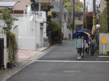 今日も元気に登校できました。 途中,小雨の降り,傘を差しながら登校する姿。上手に並んで登校できていました。