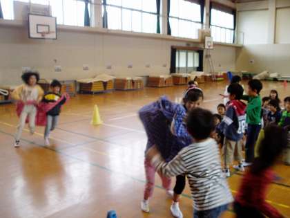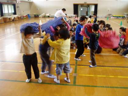 あいさつや自己紹介のあとで、デカパンリレーを楽しみました。