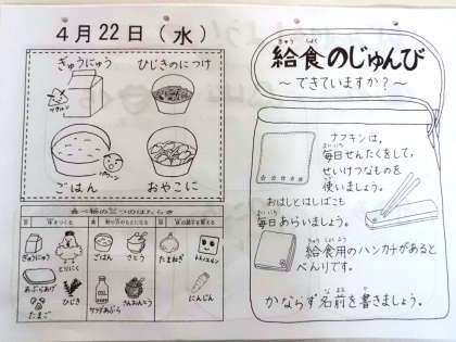 また,教室で待っている児童も手洗いをしたり,ナフキンの準備をしたりと,考えて行動できている姿がみられます。