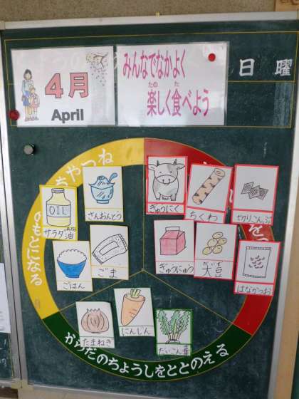 栄養黒板もしっかり三色分けしていました。