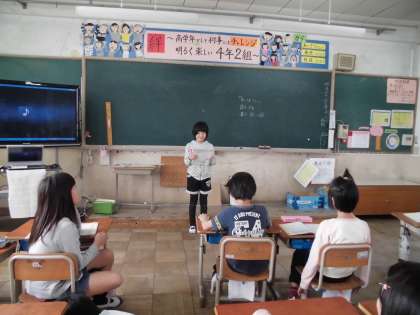音楽の『スキルアップ 歌声とリズムのトレーニング』の単元で早口言葉を楽しみました。「なまむぎ なまごめ なまたまご」。噛んでしまいニヤニヤする子どもたちも・・・。楽しく笑顔いっぱいの授業でした。