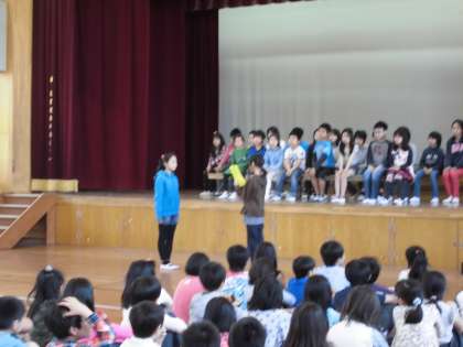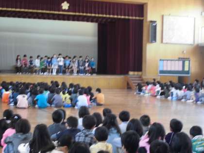 学級代表の認証式がありました。壇上で,堂々と学級目標の発表や決意表明をすることができていました。みんなで力を合わせて,よい学級をつくっていきましょうね。