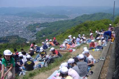 3年生は大文字山に行きました。出町柳駅から大文字山の頂上を目指して元気に出発しました。汗をかきながらがんばって登った頂上からの景色は,とてもきれいでした。左大文字や舟形まではっきり見えるほどでした。初めて京都市内の様子を見て大喜びの3年生でした。