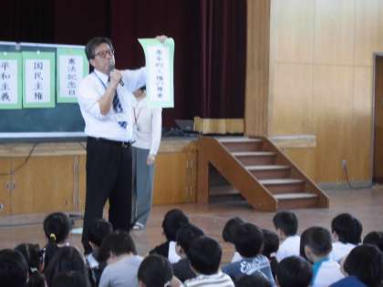 憲法週間でもある今週,京都市では,この5月を憲法月間と定めています。校長先生より,憲法についてのお話がありました。