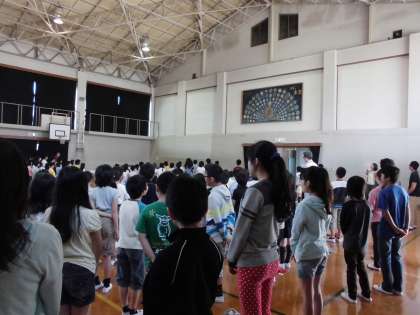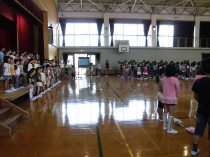 みんなできれいな声で,校歌を歌いました。体育館にきれいな歌声が響きました。1年生もとってもじょうずでしたよ♪