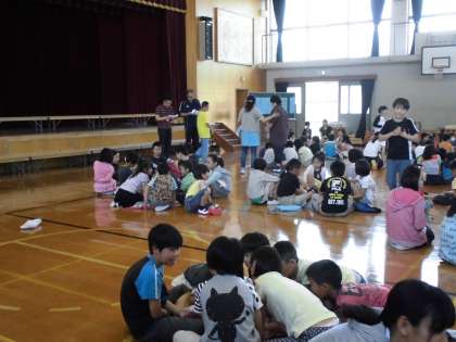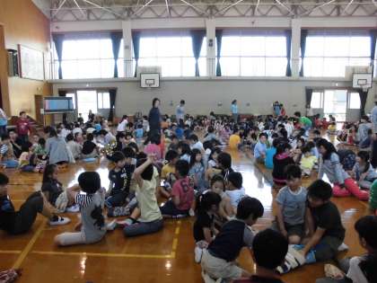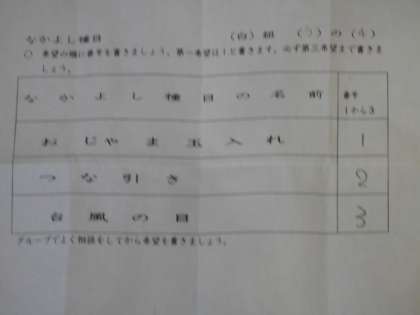 なかよしグループ(縦割り)で集まり,自己紹介をしました。そして,今度の運動会に向けてなかよし種目をみんなで希望を選び書きました。「何にしようかな〜。」「こんな種目だよ。」と6年生が親切に説明していました。