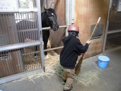 今日のクラブ活動の最後には,小屋の掃除の仕方も教えていただきました。馬やポニーに上手に乗るためにも,早く仲良くなってほしいです。