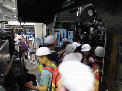 初めて蒸気機関車を見るという子も多く、梅小路公園に向かう間もわくわくした様子。