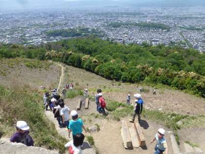 お弁当を食べた後は,「大」の字の下の方まで下りてその大きさを体感してから,