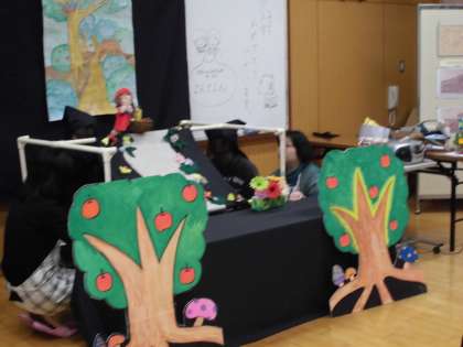 今日は,よんでよんさんのおはなし劇場。あかずきんちゃんのお話をもとに,安全のために大切なことを合言葉にした「いかのおすし」のお話を聞きました。立体的なお話の舞台と人形劇に1年生の目はくぎづけ。「あかずきんちゃんのようにお母さんとの約束を守らないようなことは,しません。」と,今日の大切ポイントもしっかり心に刻みました。