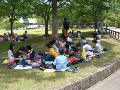 「奈良国立博物館」での見学を終え,歩いて「春日野園地」へ移動し,お弁当を食べました。