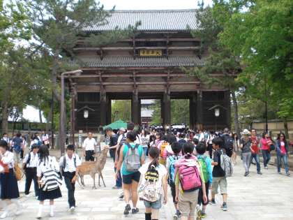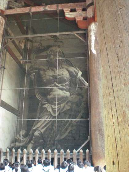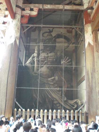 お弁当食べた後,少し休憩をし,次の活動場所の東大寺まで歩いて行きました。写真は南大門と金剛力士像です。