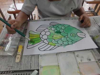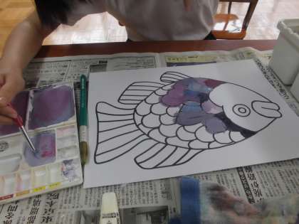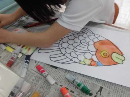 鮮やかな虹色を作るには、どうしたらいいかを考えながら、ぬりました。