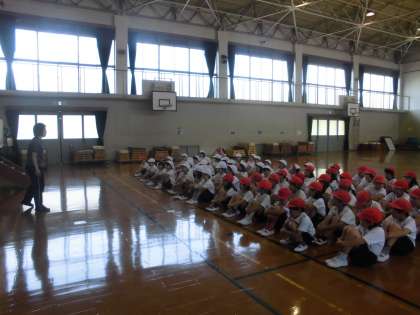 第1回目の練習、みんなお行儀よく先生のお話をきいていました。