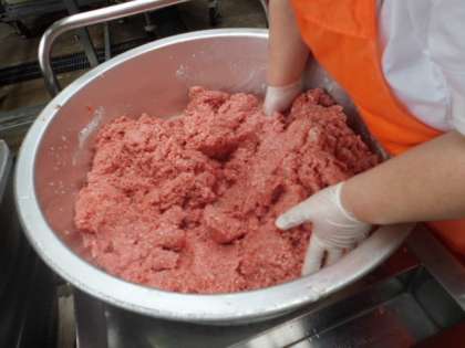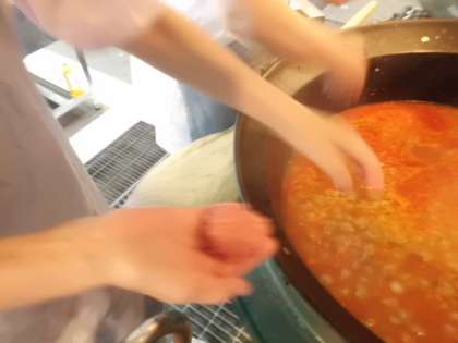 今日は,ねばりを出すために,よく練ってミートボールを作りました。